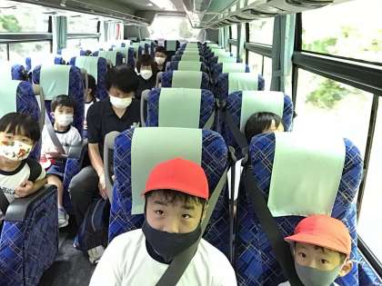 バスは枝下インターからグリーンロードに入りました。バス内で連絡する諸注意をとても静かに聞ける落ち着いた姿に感心しました。子どもたちの希望により映画を見ながら名古屋港までの1時間楽しく過ごしていきます。