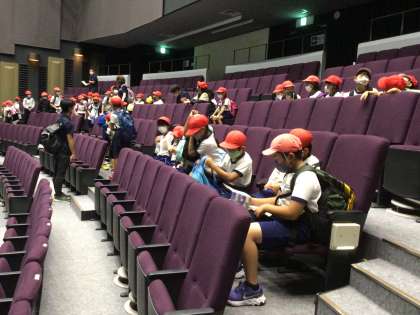 海の未来を考えようをテーマに学芸員の方が西広瀬小学校のために専属で講義をしてくださいました。海亀の生態をはじめ海洋プラスティックの問題をお話ししてくださいました。メモをしている高学年の児童もいました。質問タイムでは、6年生が先を争って質問しました。その姿は、環境問題を日頃から追究している西広瀬小の誇りです。講義後はお弁当を食べにイルカショー会場に向かいます。