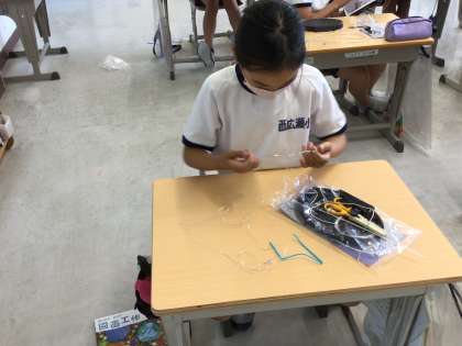 ワイヤーアートに挑戦しています。硬いスチールと柔らかいアルミの針金の特性を利用した作品づくりです。動物や人など、それぞれの創意工夫が作り始めた作品に、早速現れていました。完成が楽しみです。