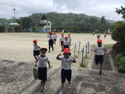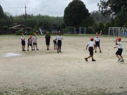 お昼の放課に雨がやみましたので、外で遊びたい児童や野菜の観察をする児童が運動場に出てきました。運動場で遊ぶ姿を久しぶりに見ました。たくましい子どもたちです。