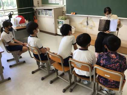 4年生はほたるの写真絵本、5年生はおりひめと牛飼いが登場する「七夕」の絵本、6年生はコロナ禍で働き続ける人々のお話でした。