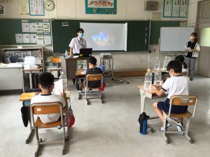 豊田市上下水道局から渡邊さんと真野さんを講師にお招きして、4年生が下水道に関する学習を行いました。