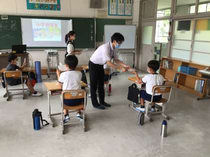 下水の汚れを分解する際に微生物が活躍している様子を動画で見ることができました。ティッシュペーパーとトイレットペーパーをそれぞれ水に入れてかき混ぜる実験では、ティッシュペーパーが水に溶けないことを確かめることができました。ティッシュペーパーなどの水に溶けないものや油、残飯を下水に流すと下水管の詰まる原因になり、生活者の安全が脅かされることを知りました。講義を受けた4年生には「認定証書」が渡されました。さらに学習を深めたい人には、市主催のイベントの紹介もされました。HP配布文書に掲載しましたので、興味のある方は閲覧してみてください。
