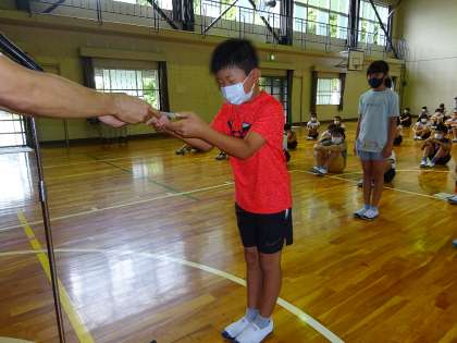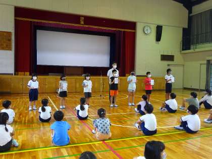 水泳の授業を頑張り周りの模範となった児童、算数に積極的に取り組む児童、クラスの良いことを発表し続ける温かな目を持った児童、授業の発表が素晴らしい児童を表彰しました。