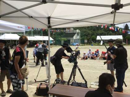 玉入れは順調に撮影が済み、リレーを時間をかけて撮影しています。話の筋上、重要なシーンが多くあります。日が差してきて暑くなっていますが、撮影スタッフと出演者は皆頑張って撮影を進めています。
