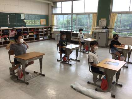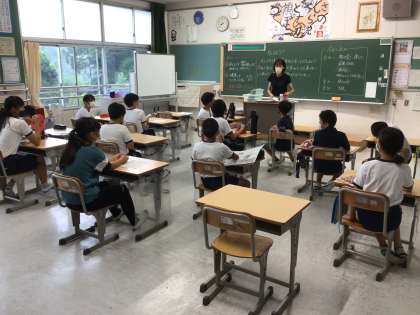 学級活動では夏休み中の出来事を聞き合いながら、情報交換をしていました。