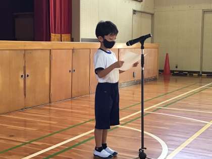 夏休みの楽しい思い出を披露してくれました。流しそうめんや妹の誕生日会の様子を楽しそうにお話ししてくれました。9月もたくさん遊びたいと、抱負も最後に語ってくれました。