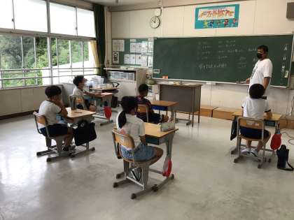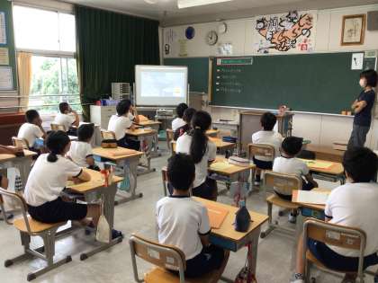 早朝に暴風警報が解除され、通常の学校生活を送ることができています。通学路の危険箇所は報告されませんでしたが、ゴミや枝等の撤去に対応していただいた方がいらっしゃると思います。ありがとうございます。さて、延期していました避難訓練を2時間目に実施しました。台風の件もあり子どもたちは非常に緊張感をもって訓練に参加することができました。教室での事前指導では、基本的な行動を確認したり、河川の氾濫により被災した地区の動画を見たりしました。