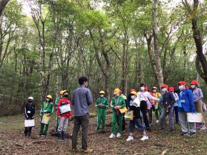 面の木峠ではブナの原生林を見学しました。気温は18度、西広瀬小と環境の違いを肌で感じました。