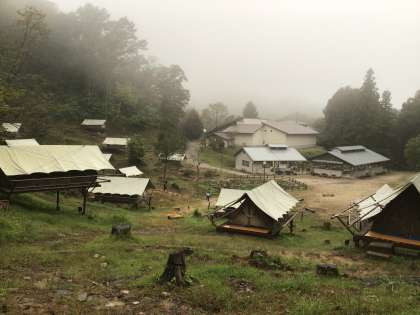 6時、ファミリーサイトに起床を伝える音楽が鳴りました。トイレに行ったり歯磨きをしたりする子どもたちの姿が見られます。六所は深夜に雨が降りましたが今は降っていません。気温は22度。晴れなかったことで、気温は下がらず助かりました。