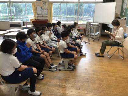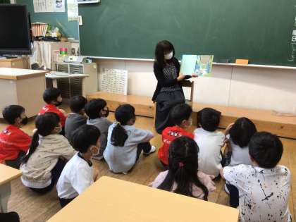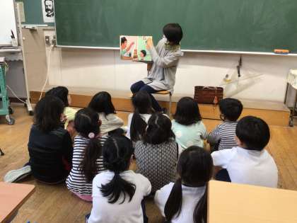 今朝は絵本の読み聞かせ「ほたるの会」があり、6名の読み聞かせボランティアさんが各教室で絵本を読んでくださいました。