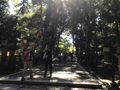 若草山から春日大社まで歩きました。今日もたくさん歩いています。 この後は法隆寺に向かいます。