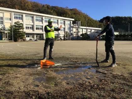 昨日の雨の為、運動場や周辺道路はすっかり濡れてしまいました。先日メールでお伝えいたしました通り、試走会は明日に延期いたします。今日の職員によるコース整備と日差しによって、明日の試走会は安全に開催できる見込みです。