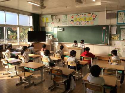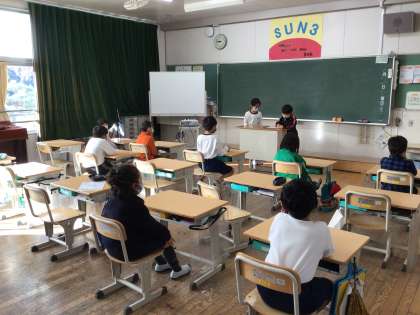 3年生はとても落ち着いて、係の児童が朝の会と健康観察の取り回しをしていました。笑顔で「元気です」と答えてくれました。