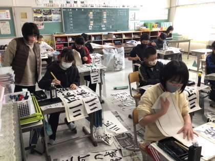 講師のお二人による指導を受けて、1月10日の書初め大会では、いっそう良い字を書いて欲しいです。