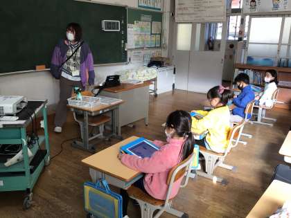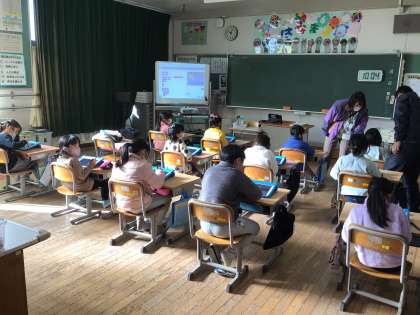 今日はICT支援員の講師さんが1日各クラスの授業に入り、ICTを活用した授業を担任と協力して行います。