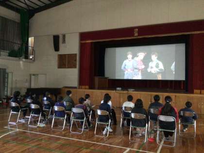 劇団四季が全国の子どもたちに舞台を通じて生命の大切さ、人を思いやる心、信じあう喜び等、人が生きていく上で最も大切なものを語りかけるプロジェクト、「こころの劇場」を6年生が視聴しました。体育館の舞台を使って大きく投影された映像により、6年生は特等席で上質なミュージカルを堪能していました。