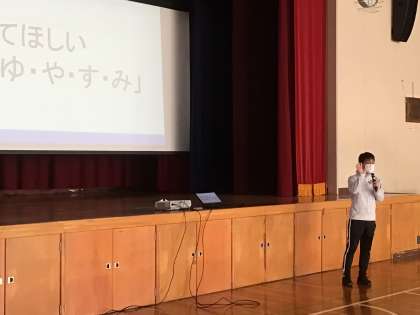 全校朝の会の最後に、生活指導主任から冬休み中の生活についてお話がありました。「ふゆやすみ」にちなんだ次のお話でした。