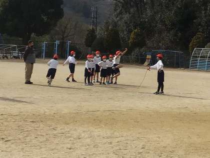 長縄跳びに挑戦していました。2月7日には高学年が主催する「長縄跳び大会」を計画しています。得意な子は連続して跳んだり、跳びながらポーズを取ったりしていました。タイミングを測りなんとか跳べた子に、周りの子が拍手する場面があり、心が温まりました。