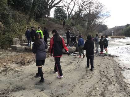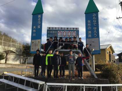 6年生全員で矢作川に水質測定に出かけました。昭和51年7月3日に測定を開始して、今日で1万7千日を迎えました。6年生が記念に写真撮影をしました。
