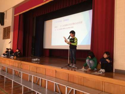 4年生はミニ水族館の紹介を中心に、飯野川での水質調査活動や名古屋港水族館の講義から学んだことを発表します。最後に「ゴミゴンクエスト」と名付けたクイズゲームを披露します。