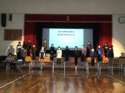 6年生は水質測定17,000日の達成を記念して、46年前の6年生の児童の願いを劇で表現します。また、矢作川清掃で集めたゴミを活用した作品を紹介し、作品を通して下級生や地域・保護者の方々にメッセージを届けます。