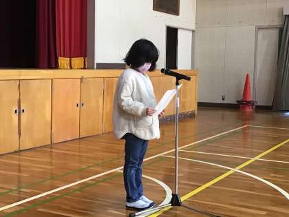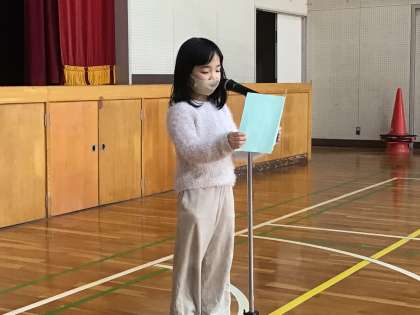 全校朝の会にて、4名の児童がスピーチを行いました。