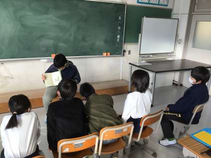 2年生・4年生・5年生教室で、図書委員による絵本の読み聞かせがありました。
