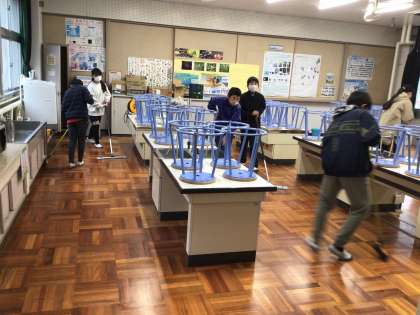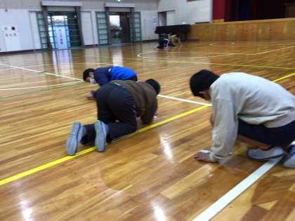 理科室のワックス掛けと体育館フロアの汚れ落としを、6年生が二手に分かれて6時間目に取り組みました。6年間学んだ校舎を綺麗にする活動を見ると、いよいよ卒業の日が近づいたと感じます。先日偶然、6年生が低学年時にビオトープを散策する写真を見ました。小学校の6年間は、心と身体の成長は大変大きいです。次々と物を運び、協力して作業を進める姿を見て、改めて感じました。
