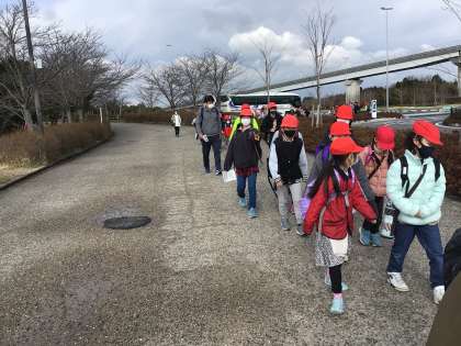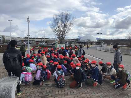 30分もかからずに到着しました。ここからは縦割班で活動します。各班慎重に、トイレ利用から始めているようです。少し肌寒いからでしょう。