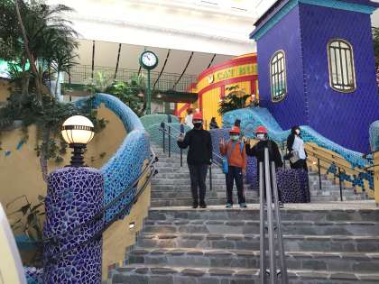 グループで思い思いの場所を散策しています。館内は暖かく快適です。