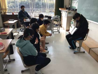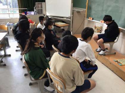 5年生の教室では、「世界で一番美しい村」の絵本の読み聞かせでした。4年生の国語の教科書の物語文の続編でしたので、5年生は懐かしく感じているようでした。教科書が悲しみに包まれた終わり方でしたので、今回の絵本に描かれた希望あふれる結末に心が温まりました。