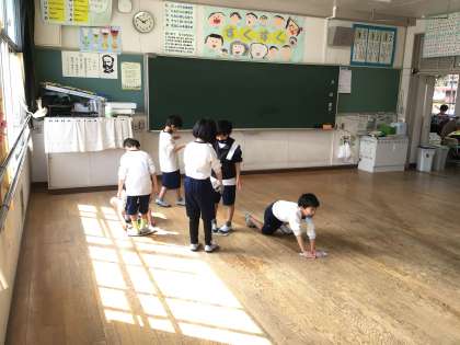 大掃除が始まりました。机を廊下に出して皆で床を磨きます。1年間の汚れをすっかり落とし、次の学年に綺麗な教室を渡します。児童が下校した後にワックスをかける予定です。明日登校すると、教室の綺麗な床が児童を待っています。