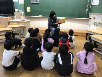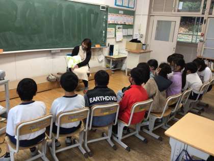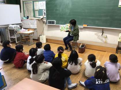 1年生はミミズ村のみみずんのお話でした。土の中の村の絵が断面で描かれた、楽しい絵本でした。