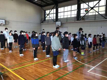 朝の学習タイムに在校生が校歌の練習をしています。朝ですので体をほぐすことから始めました。練習する度に声が大きく綺麗に上達しています。