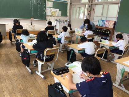 2年生は国語の授業でした。風の郵便屋さんの音読を始めるところでした。ノートに書かれた字を見て、1年間できれいに書けるようになったと感心しました。お子さんのノートを、ぜひ見てください。