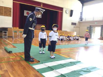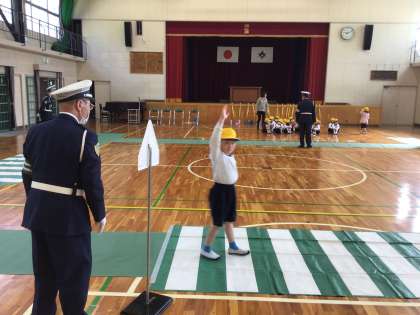 説明を聞いた後に、一人ずつ順番にコースを回りました。信号をよく見ること、右左の確認をすること、手を高く上げること、しっかりできるように教わりました。