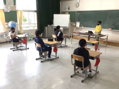 6年生の教室では、本日が姿勢の日である為、養護教諭が準備したチェックボードを使って、皆で良い姿勢を確認していました。手で作る「グー」「チョキ」を基準に使い姿勢を確認していました。和気藹々と楽しく確認していました。授業中もこれで行こうと担任が声をかけていました。