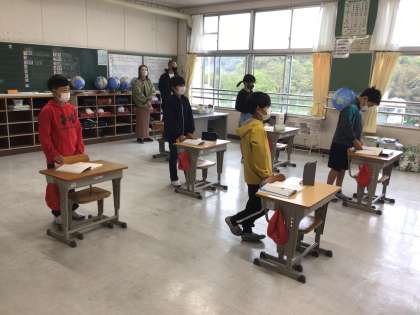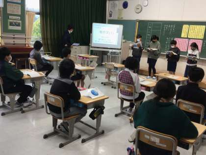 6年生は、国語「サボテンの花」を、感じたことや考えたことを朗読しました。表現の工夫を班で考え発表していました。