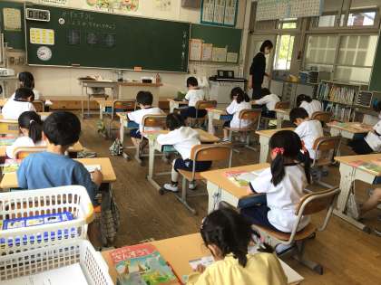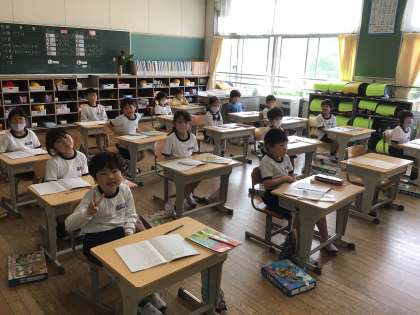 1時間目の授業は算数です。数字の書き方を覚え、練習しています。書き終わったら姿勢良く待っている人がいて感心しました。