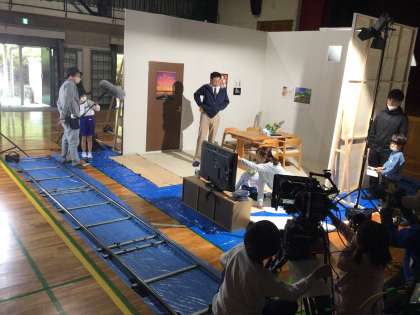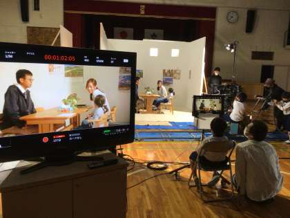 4つの班の前半の撮影体験が終わりました。休憩した後半は、前半で体験していない役に就く予定です。
