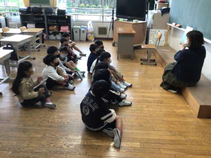 2年生の教室では、担任教師による絵本の読み聞かせ中でした。絵本のタイトルは「100階建ての家」でした。家の中はどうなっているのでしょうか。