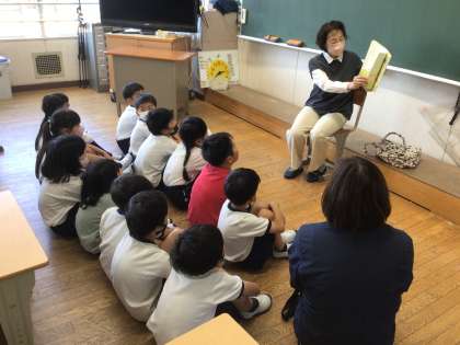 今朝はボランティア「ほたるの会」による絵本の読み聞かせがありました。