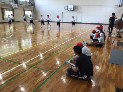 1時間目に体育館で高学年がシャトルランを行なっています。体育館に設置されたWBGT指数は18です。安全に運動することができる環境ですので、子どもたちは自分の力を安心して発揮できます。校庭に設置されたWBGT指数は28です。今後の気温上昇によっては、校舎外の運動活動を制限する予定です。