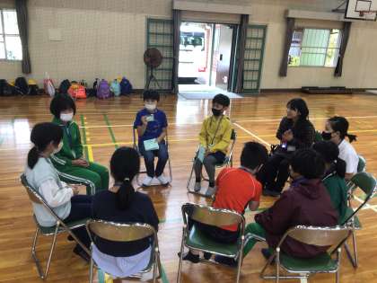 会の冒頭では、輪になって自己紹介をしました。楽しい活動に緊張感がとけたようです。