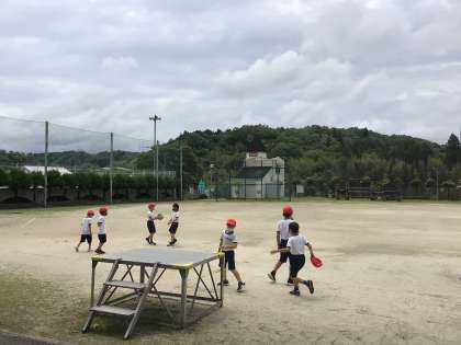 明け方まで降った雨の影響で運動場はぬかるんでいましたが、徐々に乾き始めています。