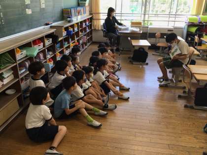 今朝は、図書委員の児童による絵本の読み聞かせがありました。委員は事前に、学年に応じた絵本を準備しています。昨年の学芸会の脚本に選んだ作者のお話を用意した委員もいました。