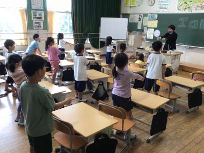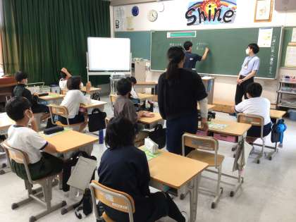 1年生はALTイアン先生の英語活動をしていました。ジェスチャーを交えて楽しく学びました。