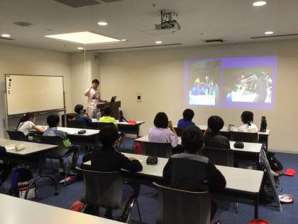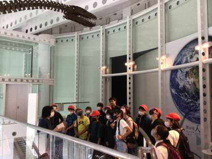学芸員さんによる深海生物の紹介や水族館職員のお仕事の解説を聞きました。館内には様々な展示物がありました。首長竜の化石のレプリカ前では、化石から分かる事柄を教えていただきました。