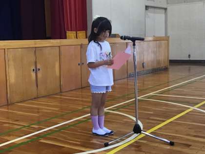 3年生の児童は、夏休みの楽しい体験とあわせて、9月からの目標を紹介しました。自分自身の為になる取り組みと、学級の為になる取り組みを設定していて、とても立派です。